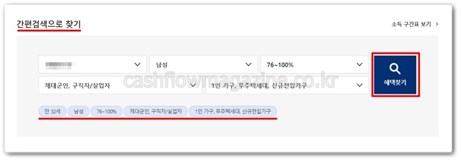 간편찾기란? 로그인을 하지 않고 몇가지 사항을 입력하면 신청인의 조건에 맞는 포괄적인 혜택을 간편하게 찾을 수 있는 찾기 방법입니다. 다만, 본인 상황이나 조건에 맞는 정확한 혜택찾기를 이용하고 싶은 경우 나의 혜택 찾기 방법을 이용하셔야합니다.